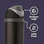 The Owala FreeSip Insulated Stainless-Steel Water Bottle with Locking Push-Button Lid easily tackles every thirst. With a built-in, easy-clean straw and a wide-mouth opening, the FreeSip reusable bottle is designed for drinking two different ways: sipping upright through the straw or tilting back to swig from the wide-mouth spout opening. Add in a push-to-open lid and playful colors, and staying hydrated has never been simpler—or more fun. Additional features include double-wall insulated stainless steel that keeps drinks cold up to 24 hours, a carry loop that doubles as a lock, a cup holder-friendly base, and a wide opening for easy cleaning and adding ice. The Owala FreeSip Insulated Stainless-Steel Water Bottle with Locking Push-Button Lid is available in three sizes: 24-Ounce, 32-Ounce, and 40-Ounce. Lid is dishwasher safe; hand wash cup. Not for use with hot liquids. Manufacturer’s limited lifetime warranty.
