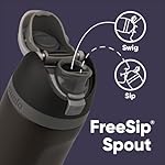 Patented FreeSip spout designed for either sipping upright through the built-in straw or tilting back to swig from the spout opening