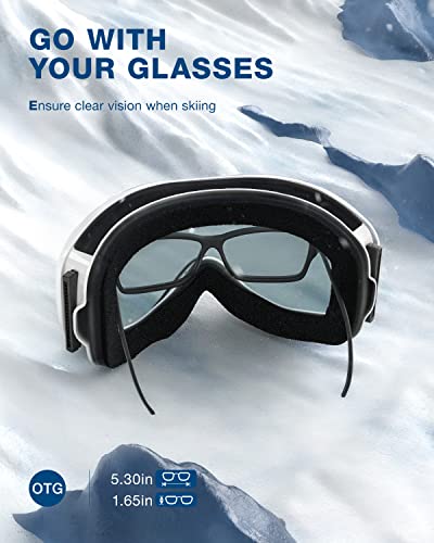 ZIONOR Lagopus Ski Snowboard Goggles UV Protection Anti fog Snow Goggles for Men Women Adult Youth VLT 8.6% White Frame Silver Lens